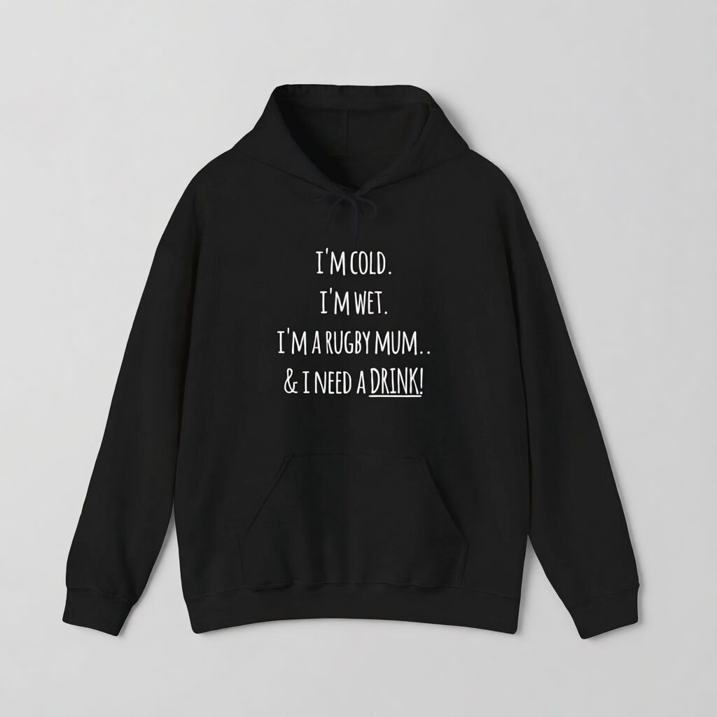 This hilarious hoodie, with the slogan “I’m Cold, I’m Wet, I’m A Rugby Mum.. & I Need A DRINK!”, is the perfect way to stay warm, stay motivated, and show your little rugby star some love. Whether you’re huddled on the sidelines or grabbing a drink with friends, this hoodie is sure to turn heads and bring a smile to everyone’s face.